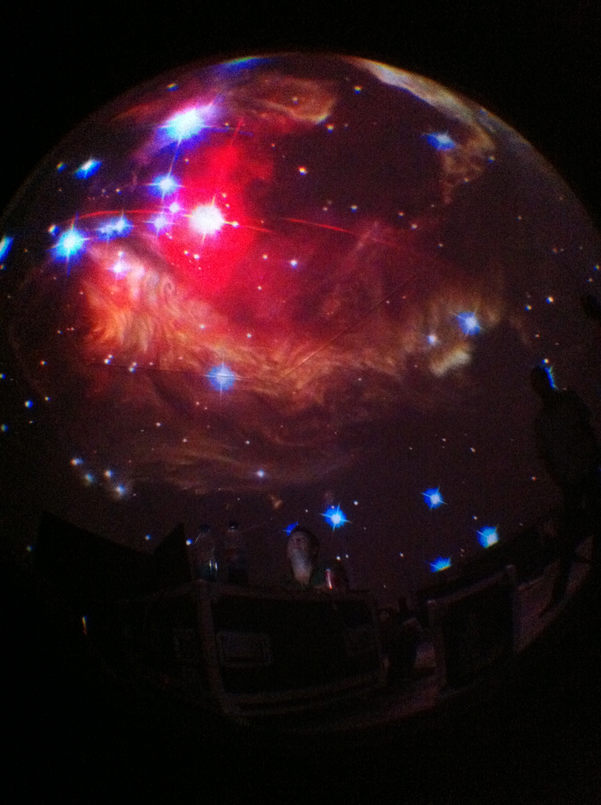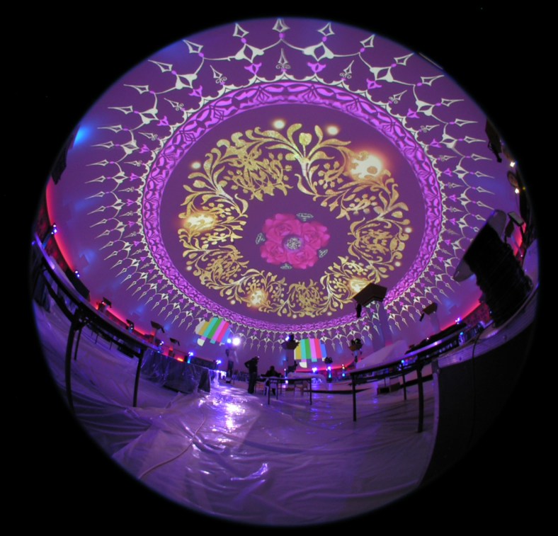 I had done quite a bit of dome theory before but this was another league. 18 huge projectors and everything that entailed. There was a lot to learn. Gladly I was in good company, it was the first time I had worked alongside Richard Bagshaw of Digital Insanity and the talentented programmer Lawrence Ryan of 360 flicks who used software from 7th Sense Design.